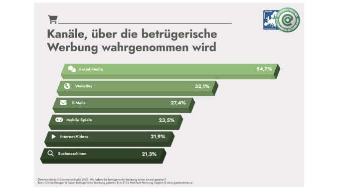 Ob Fake-Shops, falsche Produktversprechen oder tückische Abofallen – im Internet lauern zahlreiche Gefahren, die Menschen um ihr Geld bringen können. Besonders kritisch: Der Erstkontakt mit diesen betrügerischen Angeboten erfolgt oft über Online-Werbung. Die aktuelle E-Commerce-Studie des Österreichischen E-Commerce-Gütezeichens zeigt, dass mehr als jede zweite Person in Österreich (50,4 %) den Eindruck hat, bereits auf betrügerische Online-Werbung gestoßen zu sein.